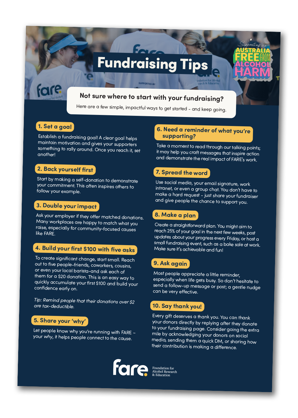 No matter how you choose to fundraise – run, host, create, or celebrate – you’re helping build healthier communities free from alcohol harms.